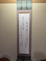 詳細は不明ですが、江戸時代中期以前の和歌になります。この地であった文化交流により残されたものと推察されるそうです。せっかくですから揮毫して頂き表装しました。