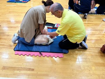 前半は熱中症の予防と対策や、CPRマネキンを使って心肺蘇生法を学び、また後半では、暴力・暴言・ハラスメントの根絶を目指して、適切な指導運営についても学びました。