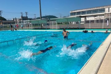 まだ新型コロナウイルス感染防止の為、夏休みのプール活動が中止になったりする学校もあり、皆さん教室開催を待っていらしたようです。スポーツクラブの水泳教室は、欠席する子もほとんどなく皆一生懸命励んでいました。
