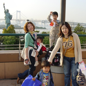 | 6時起き、いざ東京へ。今回初めて新幹線グズリにはちょっと参ったな。東京駅で佐和らと合流。お台場で姉親子と合流。それからなんとも楽しい台場めぐり。アクアシティやビーナスフォートをウロウロ。途中、たこ焼き、カレー、ケーキと食べ歩き、店のコーナーで子供を遊ばせ親はショッピング。のんびりというよりはせかせかわいわい大はしゃぎモード。子供達は皆おりこうだったしね。帰りはパレットタウンの観覧車や夜景もグッド。