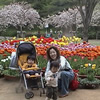 | お弁当持ってフラワーパークへ。しばふで裸足でご機嫌。葉澄は最初足の裏が痛いのか慎重だったよ。八重桜がまだ咲いててきれいだったね。