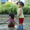 | 久しぶりにあやちゃんと外遊び。公園は水溜りがいっぱいで2人はピチャピチャやってドロンコ。めげずにトランポリン、ブランコ、滑り台。あやちゃんの真っ白なズボンは真っ黒に大変身。葉澄も素っ裸で帰ったよ。