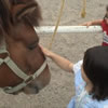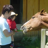 | 翌日は快晴。真っ青な空に新緑がまぶしいほど。豚さんや馬さんと遊んだり林の中をお散歩。ばあちゃんにシロツメクサのブレスレットも作ってもらったよ。 |