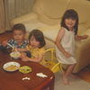 | 江南でママ友達だった親子7組が遊びに来てくれました。あいにくの雨も上がる勢いのたこ焼きparty。子供達はプールやシャボン玉で遊んだりカキ氷を食べたり。葉澄roomも満員御礼って感じで子供達は汗だくで遊んでいたよ。 |
