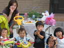 はぁちゃんは同級生のはなちゃんとローラー滑り台を何回も何回も滑っていたよ。BBQの後は、バトミントンやフリスビーで腹ごなし。5時の閉園までいっぱいいっぱい遊び、はぁちゃん帰りの車はもらったチュッパチャップスを加えたまま寝てたよ。 |