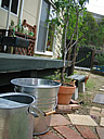 2007.1.26 一時的に作った花壇の植物はそれぞれ移動させて、花壇は撤去。デッキの階段も移動して、デッキ南側はスッキリ広々。