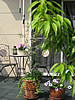 デッキの上にオリーブとペチュニアの鉢を置いてます。