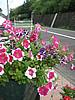 しだれ咲きニチニチソウのピンク2株とホワイト1株。 |