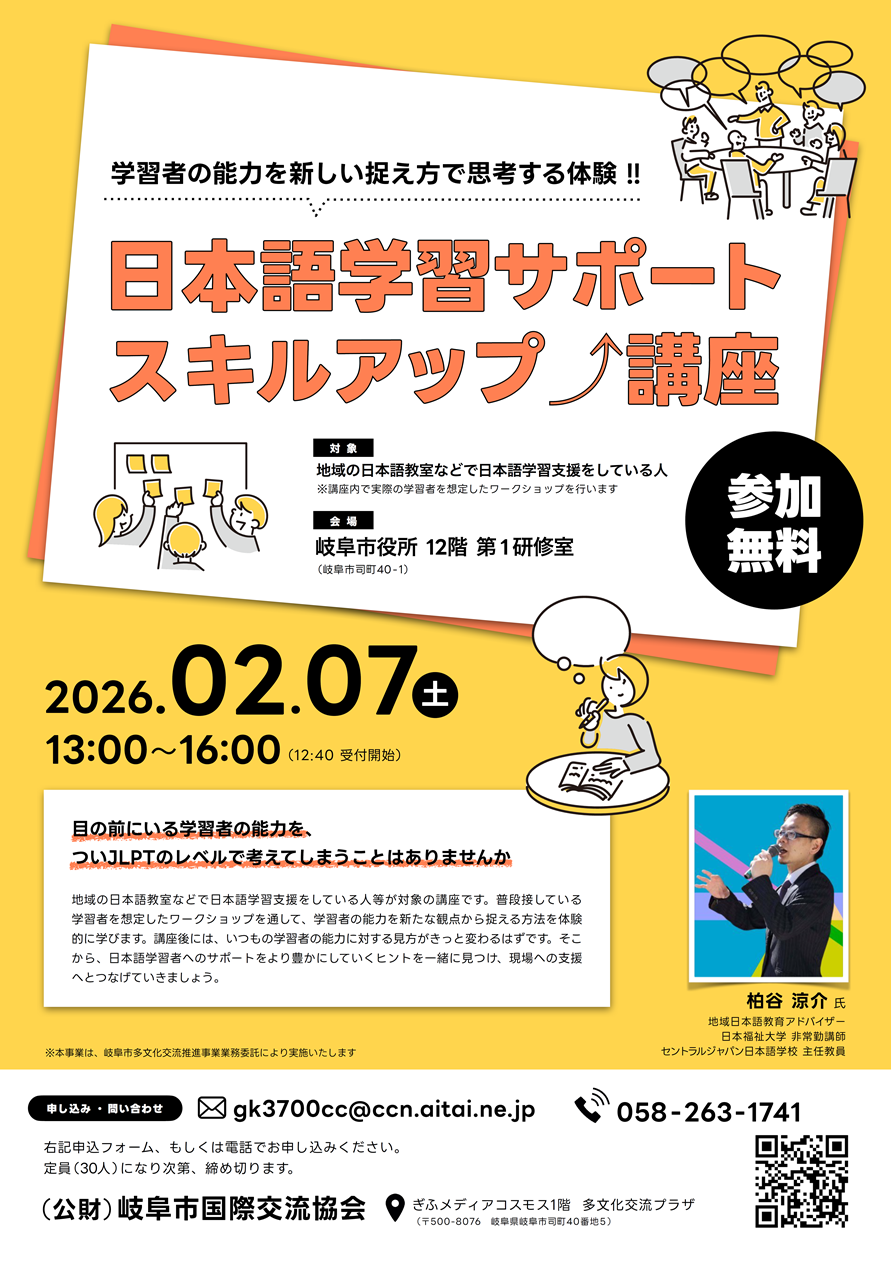 岐阜市内の留学生や技能実習生、地域日本語教室に通っている外国人など