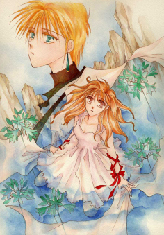 濃くなってきました。きてしまいました。・・・やっぱり途中で初志断念するのはいつものことです。・・・てけてん。 気を取りなおして更に塗りこみを開始。 この時頭にあるのは只一つ。「色調のバランス」のみ考えて塗っていきます。 で、その為に私的にしていることは「使った色」の回し使い・・・です。具体的に言うとたとえ水を塗っていても必ずしも「青色」のみで完成させないっていうことで・・たとえば今回の髪の色でも「水」の部分に塗りこんでます。こういうとんちんかんな色の乗せかたをしても尚、「青」に見えるのが「透明水彩」の良いところです。他の画材でこんなことができるかは知りませんが。 ・・・でも油彩だとやってるよな。確か。 で、全体のイメージはもう動かせないので後はただせめて「硬く」ならないように塗って塗って塗りこんで・・・☆ ここまでの時間は上のときから2時間経過。 「瞳」も怖かったので、笑、そこそこ塗ってみました。もう少しで出来あがり予定☆ |