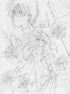 すいません。めちゃめちゃ線、薄いですね。けっこう筆圧は高いほうなんですけど・・。サイズは同人用原稿用紙です。前作よりこの大きさで下書き描いてます。・・・それ以前は、商業誌用でした。つまり、でっかいんです。でっかい方が描きやすいです。私的には・・。 でも、時間がとてつもなくかかるので、このごろ小さく描いてます。でも、逆に、ちまくて塗りにくいです。どっちがいいんでしょう。時間をとるか自己満足をとるか・・。 これで、下書きをとりあえず終えたら、しばらく寝かせます。2.3日しても描く気が失せなかったら、 トレスにはいります。 |