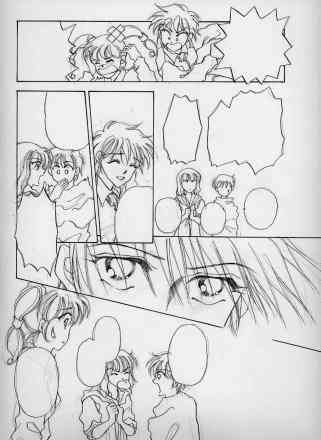 いつもなら「瞳」も同時にいれてますが、今回はいれ忘れいっぱい。この見開きも「忘れたぁぁぁっ」ページです。スキャナーで拾ってから気がついてびびってます。これから描きます。こんなんばっか☆