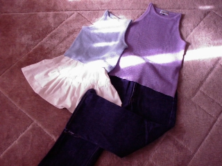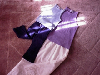 ボトム逆バージョン。 ブーツカットのGパン、手持ちのパンツを真似て 適当にパターンをおこしてみたもののイマイチでした。 私の腕がまだまだ冴えていないからなんですがね・・・。