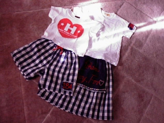 義姉が息子初節句祝いの時に作ってくれたパンツです。 Tシャツは今は無くなってしまった手作りショップで買ってくれたもの。 後日「おそろいの作ったよ〜!」と娘用のスカートも! 縫い付けられたエプロン部分には娘の名前の下に 「Happy,foo(ハートマーク)」と粋なロゴを刺繍してくれました。