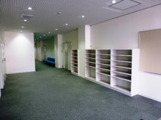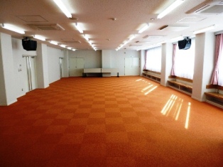 事務室です。 | 研修ホールです。 ステージ・グランドピアノもあります。 |