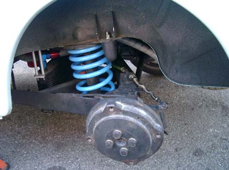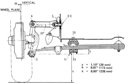 残念ながらフロントタイヤとフェンダーのクリアランスがほとんど無くなってしまいました。ハンドルを切った体勢によっては若干擦ることがあるようです。また、フロントはドラムブレーキからディスクブレーキに変更してあるので、ノーマルの車体とはタイヤの突き出し方が異なっているかもしれません。 さて、何でフロントがあまり下がらないのか考えてみました。 |