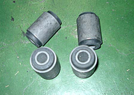 一見正常に見えるアッパーアームとブッシュ。 今回交換したアッパーアームはFIAT126の流用部品で一体型アッパーアーム。 |