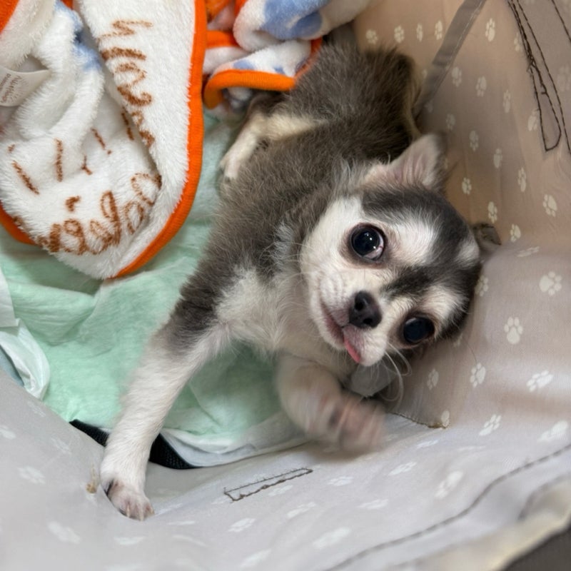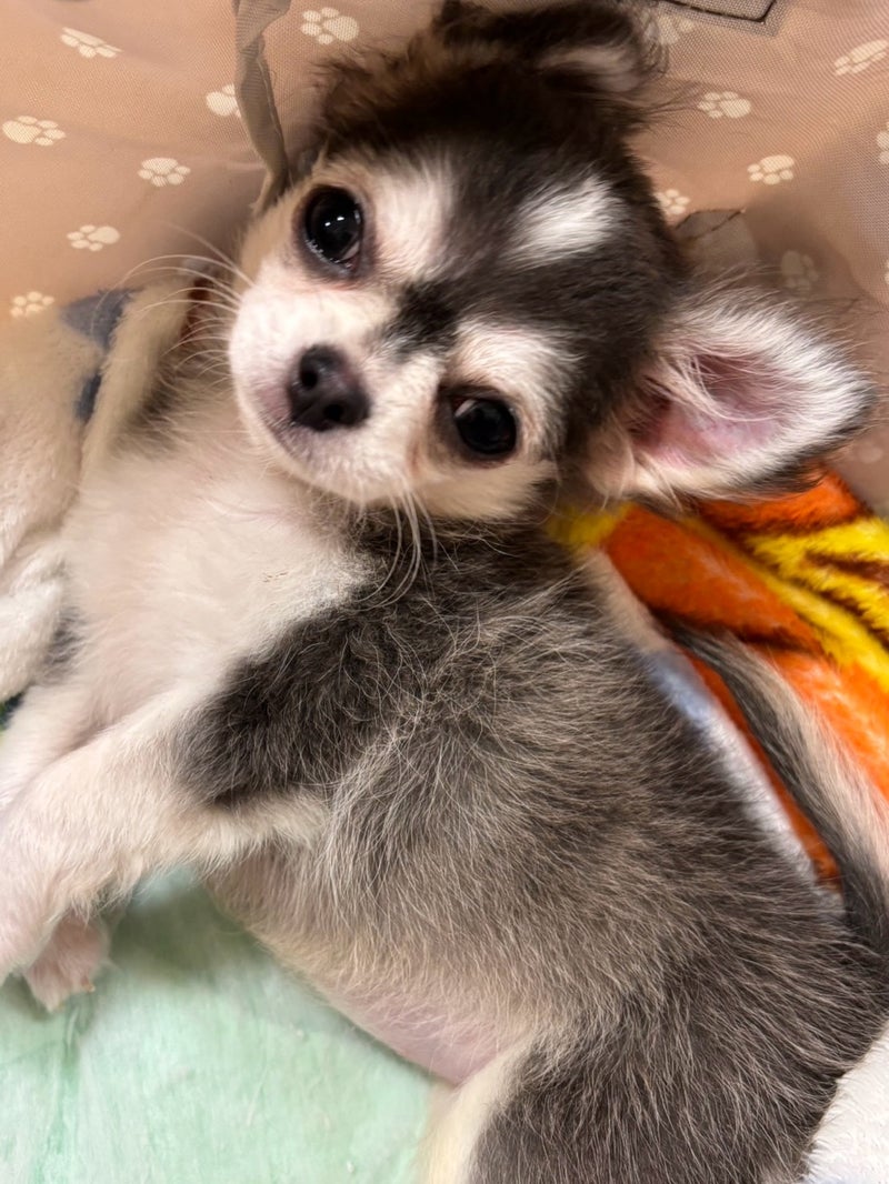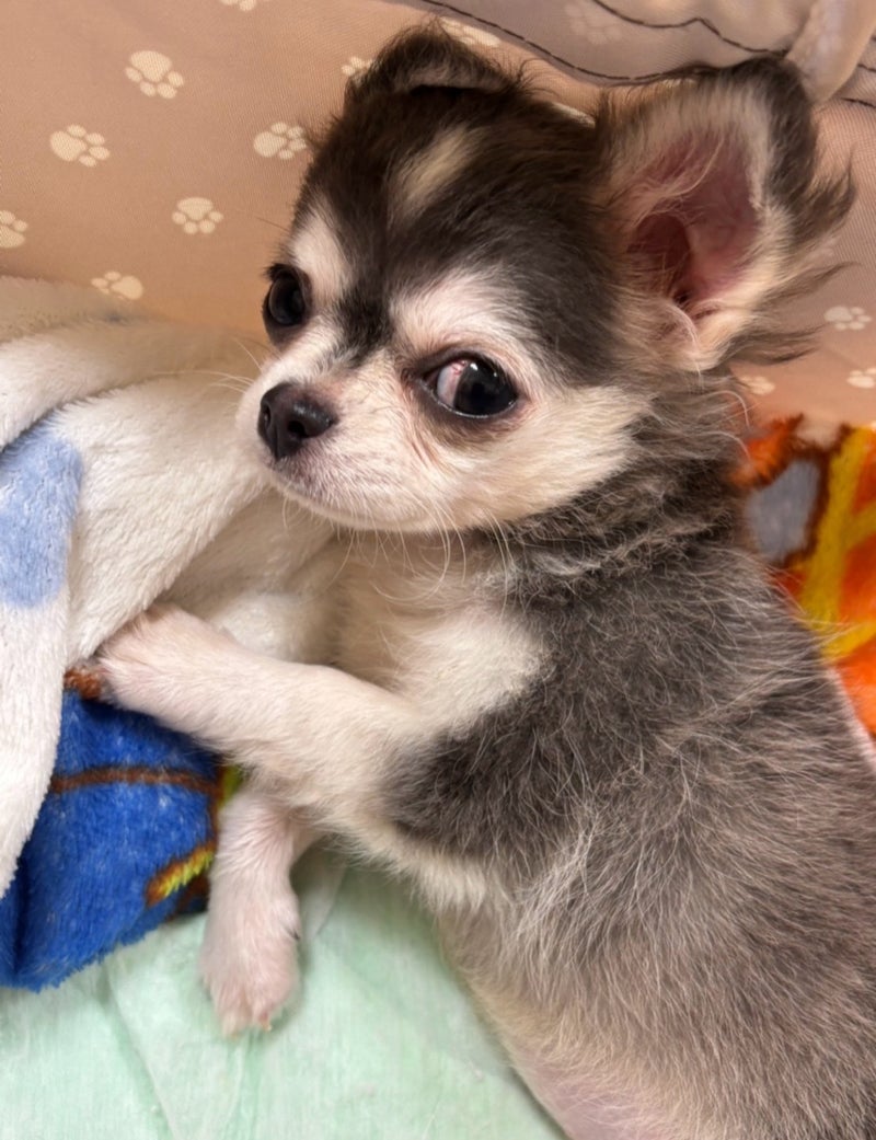 チワワ♀ あいのちゃん 2025.7.17生まれ 先天性疾患有り 心雑なし 耳検査 汚れ少 べん検査 マイナス 自力歩行は 難しい。