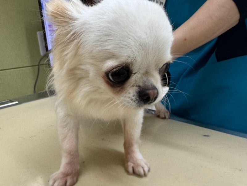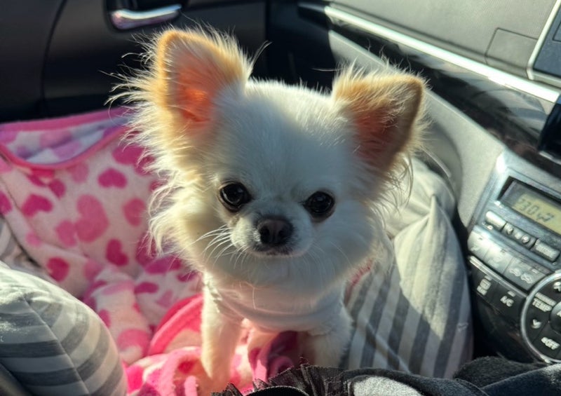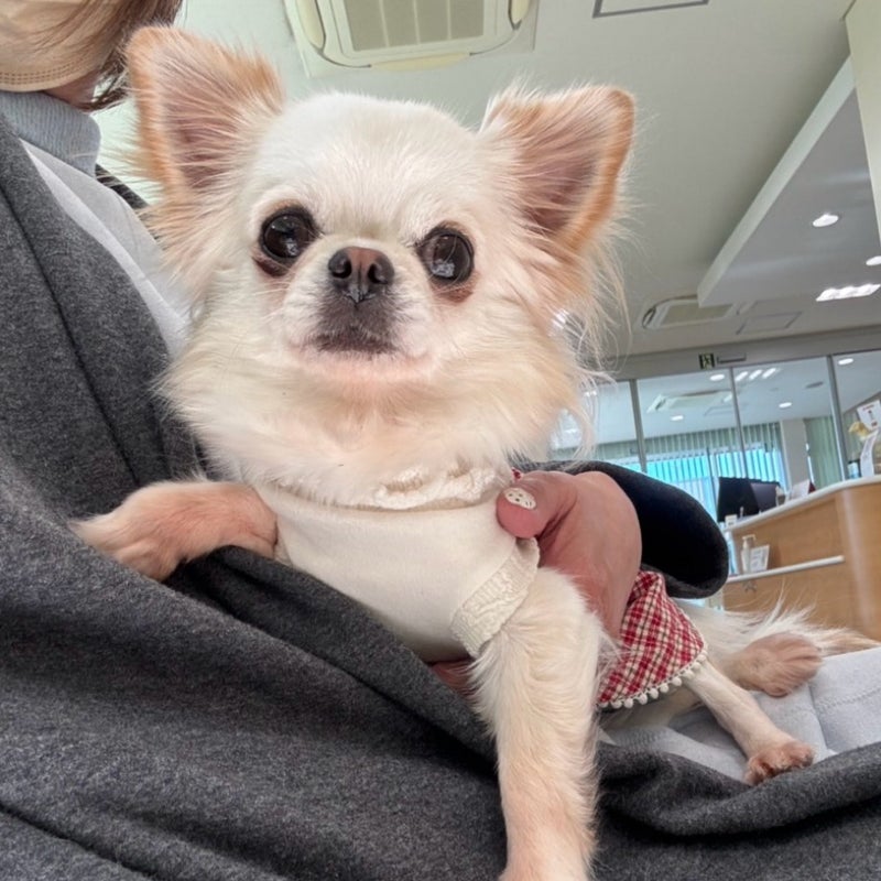 チワワ♀ かやちゃん 2023.4.11生まれ 体重 2.06kg 耳 マイナス 汚れ少 べん検査 マイナス フィラリア マイナス 心雑 なし パテラ 左右G3 8種ワクチン 済み 避妊歯科処置 1月下旬 (乳歯遺残) マイクロチップ 済み 泉門少 (頭部ペコ)
