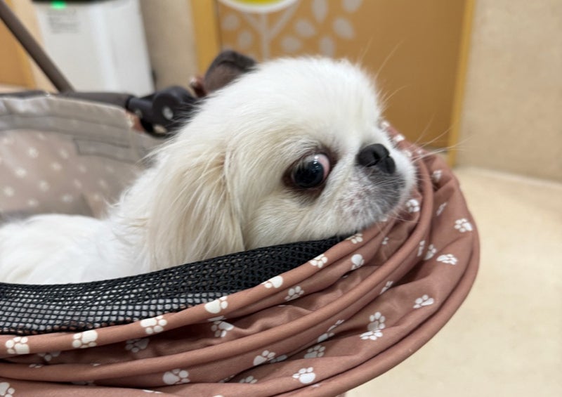 ペキニーズ♀ すずらん 2023.7.26 体重 4.78kg (少しダイエット💦) 耳 汚れ 洗浄 投薬 べん検査 マイナス フィラリア マイナス 心雑 なし パテラ なし 8種ワクチン済み 避妊済み 歯科処置 臍ヘルニア手術が12月初旬 MC あり