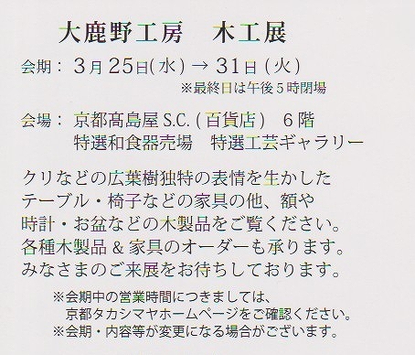 | 3.11(…)`3.17(‰Î) | ‹ž“sƒ^ƒJƒVƒ}ƒ„ ŽRŒû—vE”ŽŽq–ØH“W |